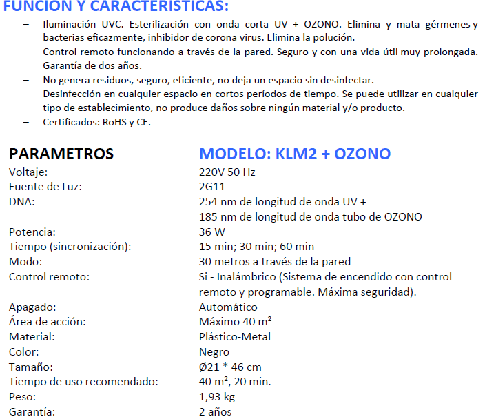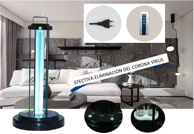 LAMPARA ANTI CORANAVIRUS UVA+OZONO 36W NEGRO C/MANDO TEMPORIZADOR