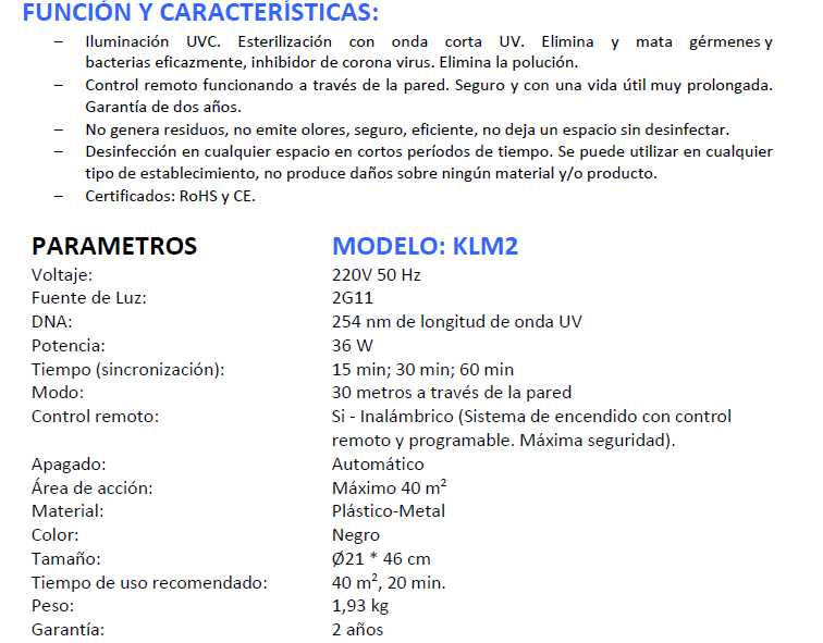 LAMPARA ANTI CORANAVIRUS UVA 36W NEGRO C/MANDO TEMPORIZADOR