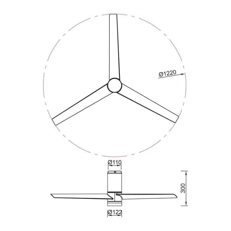 - Ø interior: 12 cm / Ø aspas: 122 cm / Grosor 30 cm