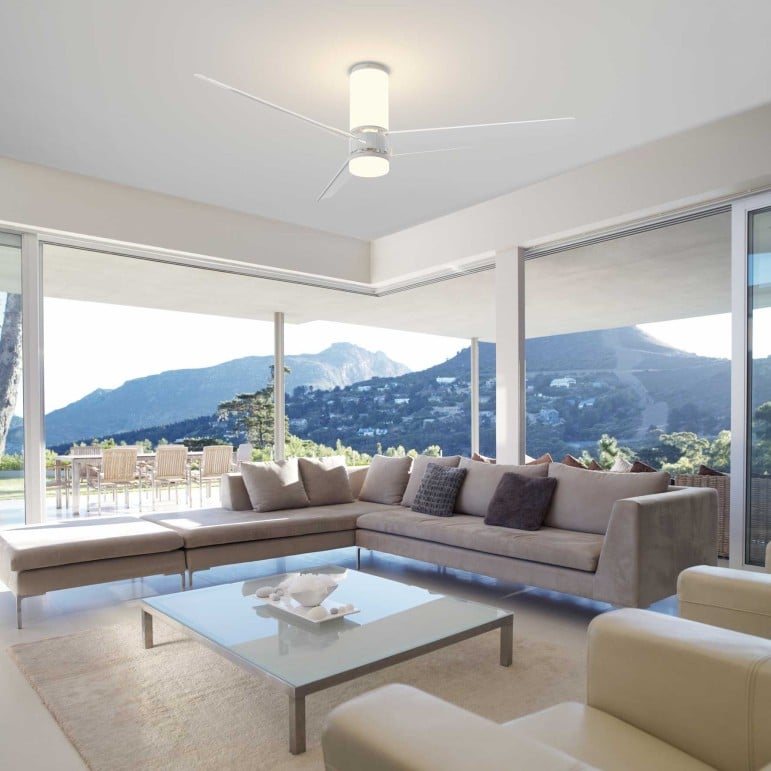 UP&DOWN es un ventilador con lámpara de techo que, con su diseño moderno, se adapta a innumerables opciones de decoración. Equipado con aspas transparentes y conexión Bluetooth, permite controlar las funciones inteligentes mediante control remoto o aplicación para smartphones. Permite ajustar la velocidad, la intensidad y la temperatura de la luz (de 2700 K a 5000 K). Este ventilador de techo incorpora una delgada luz LED, perfecta para iluminar difusamente la habitación sin sacrificar su potencia, ideal para espacios de más de 20 m².