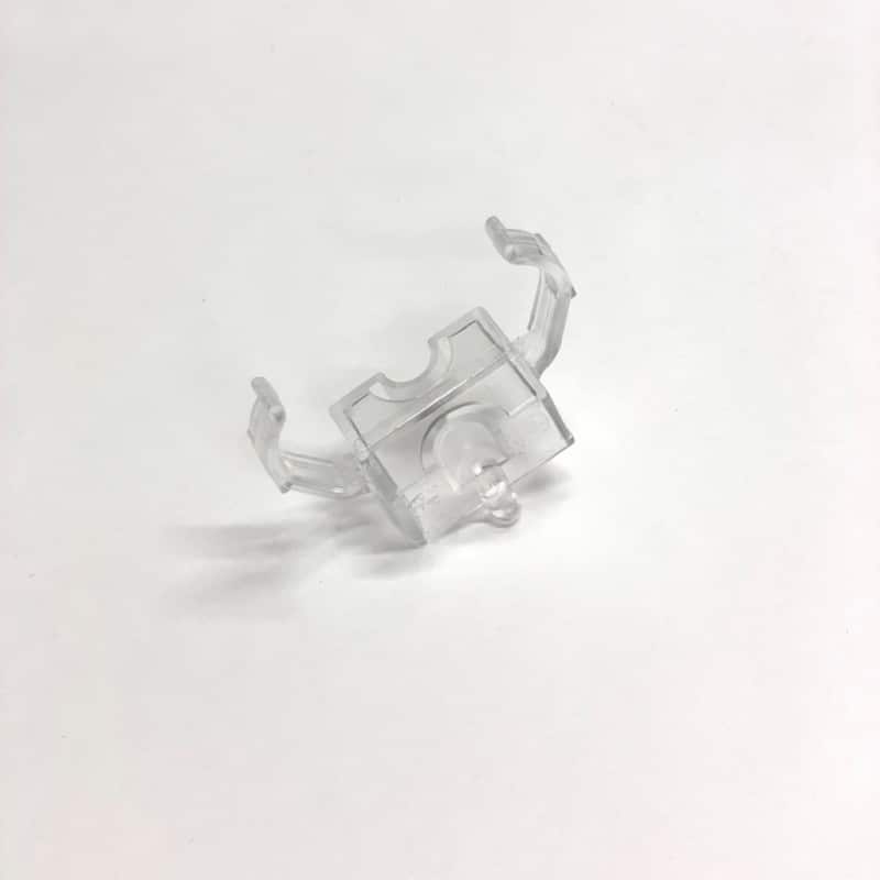 Pinza de plástico para sujeción lateral de lámparas compactas 2G-11. Sujeción a presión.