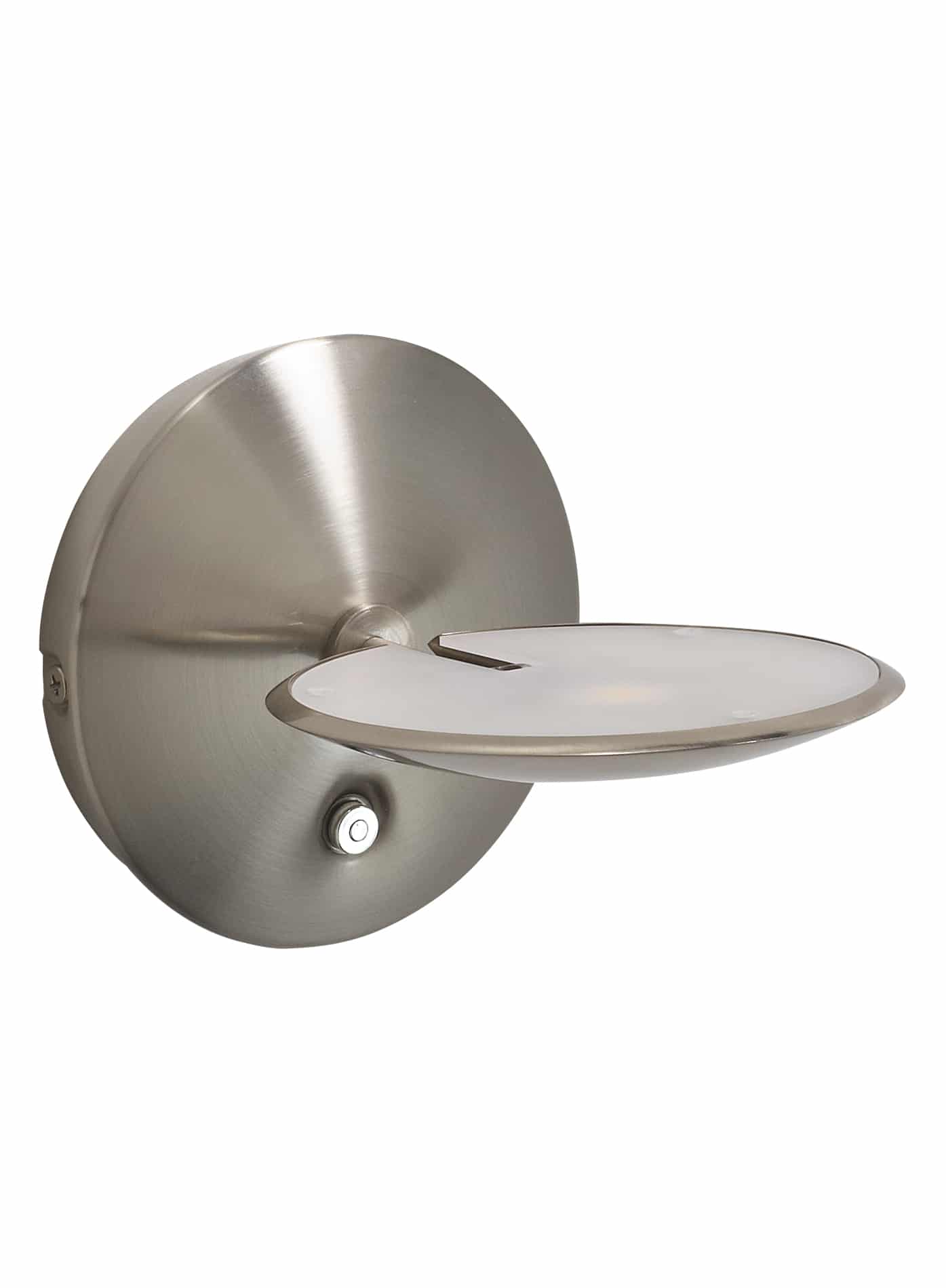 Aplique de luz LED direccionable hacia arriba y orientable en Acabado Niquel Satinado , Inteructor Tactil de encendido y Regualble de intensidad. Potencia de 7W