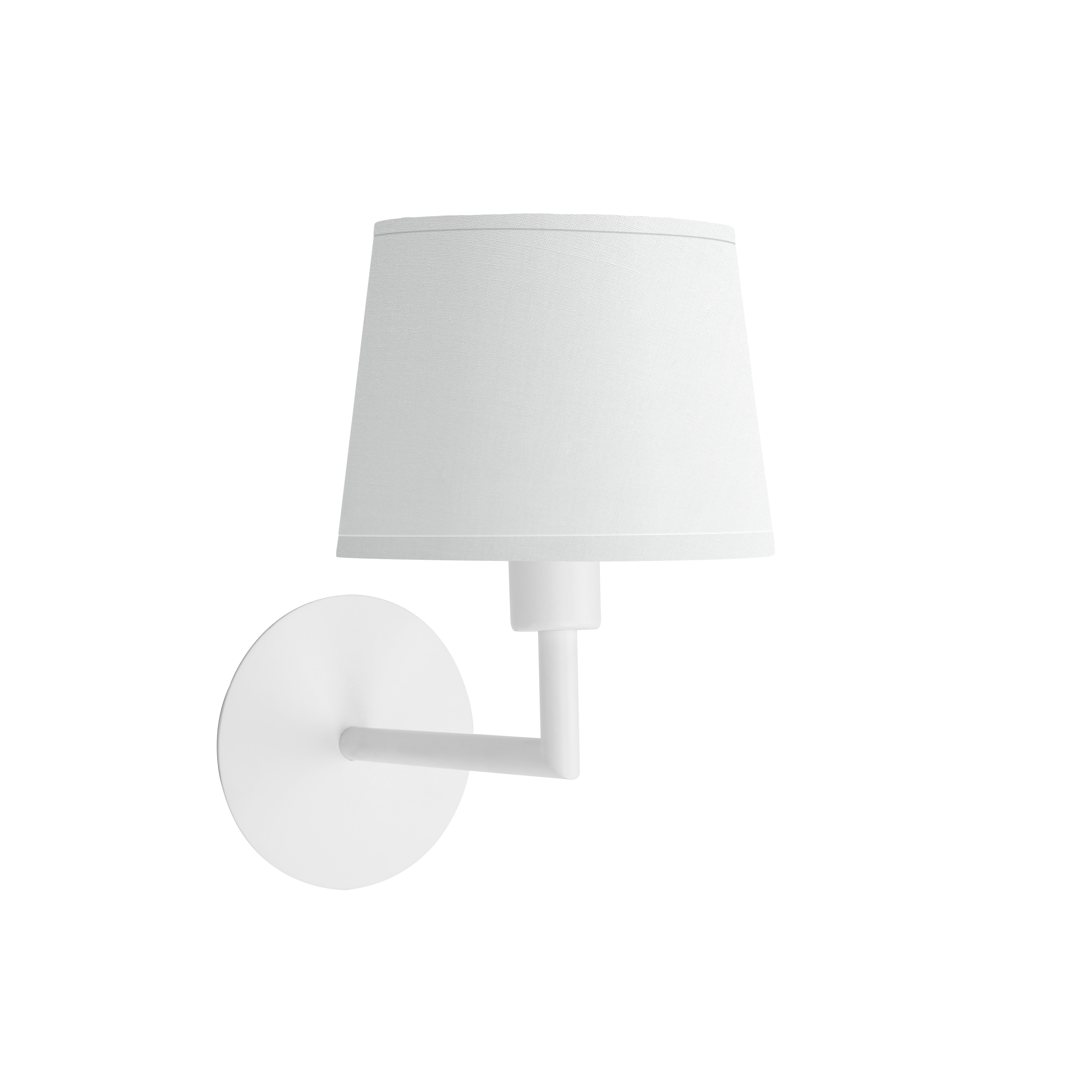 Aplique de una luz en color Blanco y con pantalla BLANCA de 15 centímetros de diámetro. Realizado textil y en metal. Diseño de líneas sencillas, ideal para decorar tanto en dormitorios, salones, entradas como en zonas de trabajo, aporta gran elegancia a la estancia que ilumina. Posee un portalámparas E14. Bombilla no incluida. Tiene unas dimensiones de 27x15x25 centímetros.