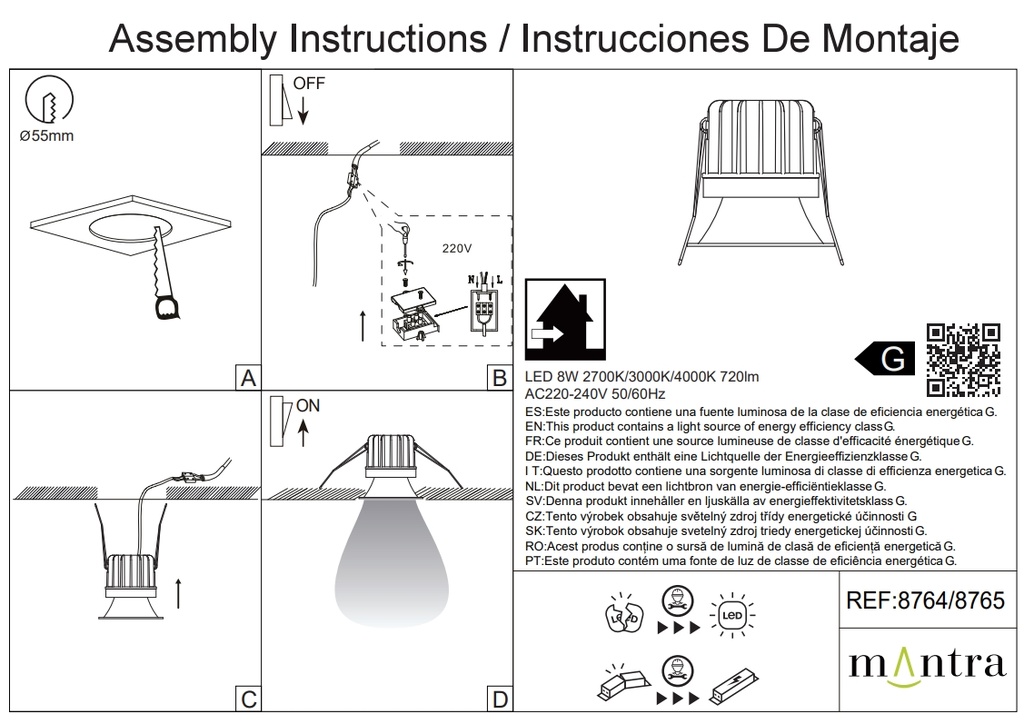 Empotrable de techo este empotrable tiene protección IP65, lo que lo hace totalmente válido para zonas húmedas como baños o terrazas exteriores., está disponible en blanco y dos tamaños:  6.5 y 8.5cm. y en tiene led switch, mediante el que podrás elegir la tonalidad de luz en la misma luminaria: 2700/3000/4000k.