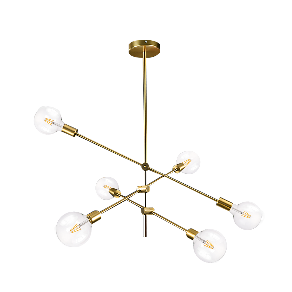 Lámpara de seis luces de color BRONCE. Está compuesta por un cuerpo central de metal en el cuál convergen de forma horizontal tres partes rígidas, pudiéndose  orientar la proyección de la luz en su plano vertical y la disposición de sus brazos. Viene Con Bombillas Incluidas y al estar las bombillas al descubierto, tiene una proyección directa de la luz.. Sus dimensiones son de  73x81x81 centímetros. Posee seis porta lámparas E27. Bombillas incluidas.  Ideal para decorar e iluminar cualquier estancia de la casa o lugar de trabajo, dando un toque sofisticado y elegante, acorde tanto con estilo moderno como clásico o rústico.