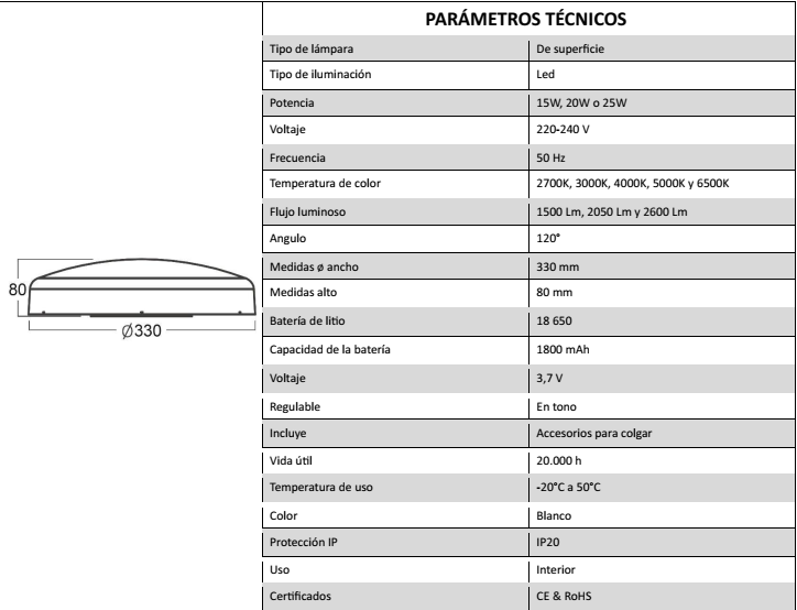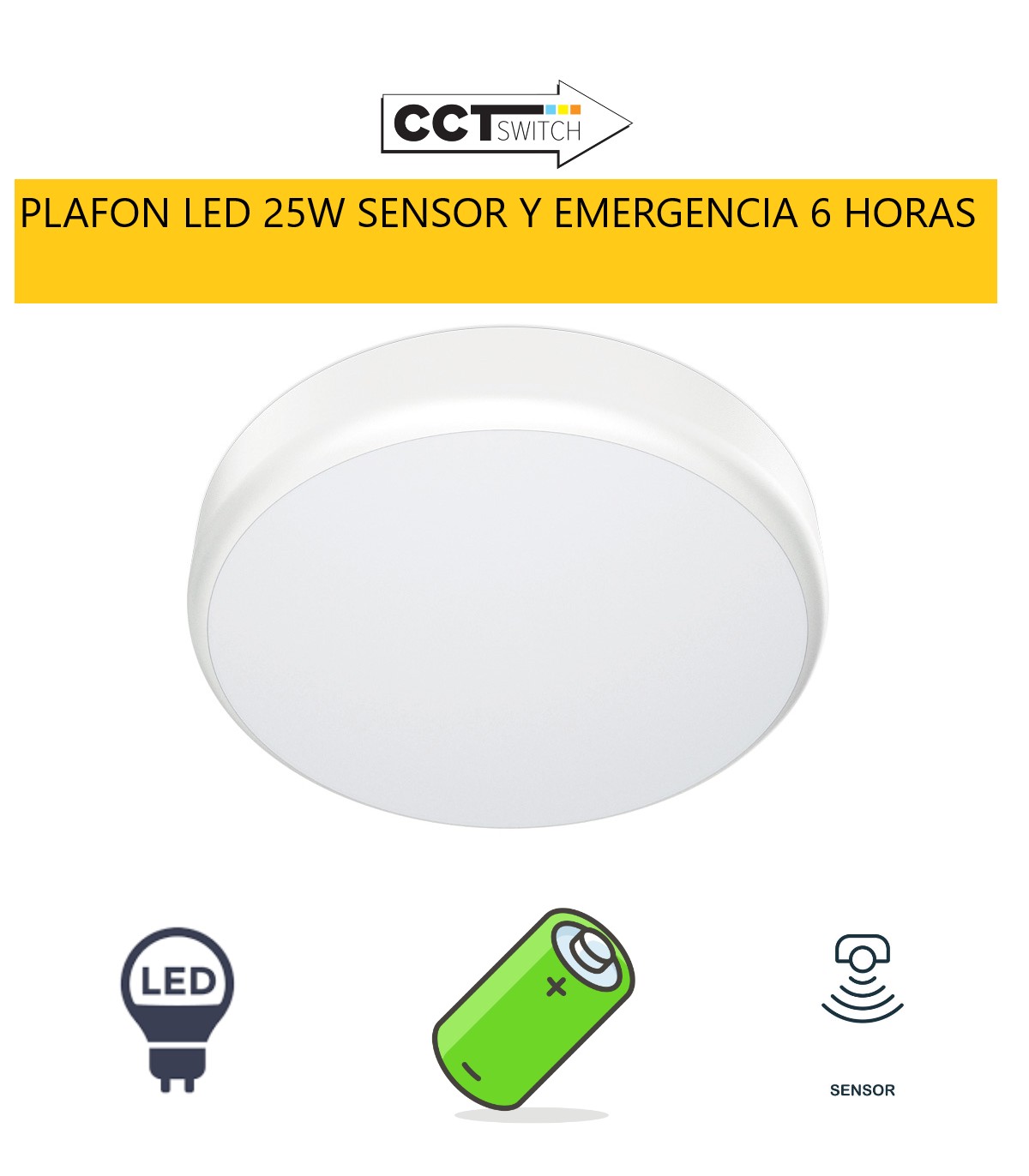 Plafon Superrficie Led Emergencia 25W Con Sensor PIR Cambio de Tono E Intensidad Ajustables
